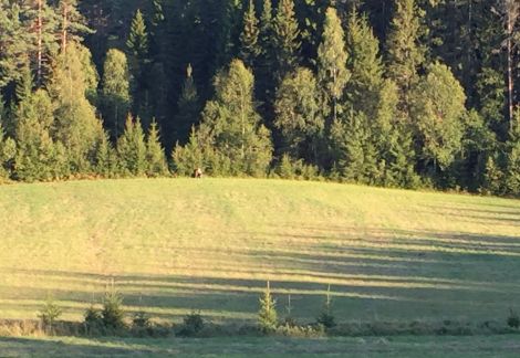 Ballongen gjorde snart en mellanlandning för byte av passagerare. Vid kanten på gärdet fick vi se att det satt en rådjursjägare på första parkett.