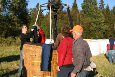 Jonas, Bengt, Elisabeth och Malte hjälper Kenneth att rigga ballongen.