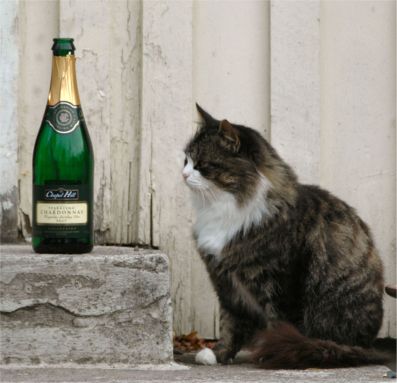 Efter landningen lämnades kvar en (nästan) tom flaska samt en mycket kelig katt.