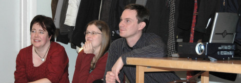 Här ses Susanne, Lea och Peter när de hamnat intill projektorn som visade uppskattade filmer från klubbflygningar.