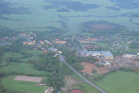 Samhället verkade relativt folktomt vi 6-tiden på morgonen. Hos byggvaruhandeln Optimera som vi passerade på låg höjd kunde vi i alla fall läsa på deras skyltning att vi inte skulle behövt vänta mer än en timme tills de öppnade.
