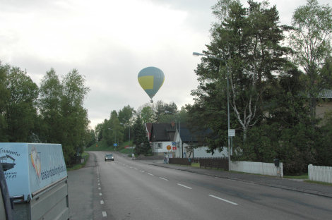 Snart var i alla fall ballongen i luften och smög norrut över Högsäter.