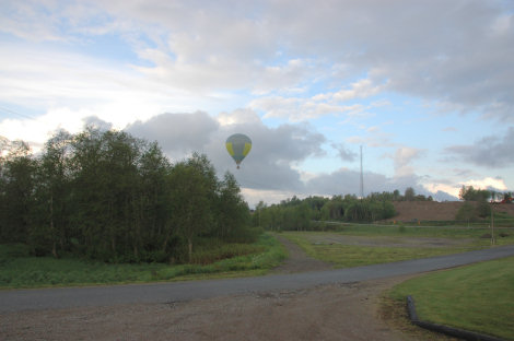 Samling kl. 05.00 inför morgonflygning och några ivriga medlemmar mötte upp. Kenneth fyllde vanlig ballong med helium som sedan släpptes lös och visade vindriktning och fart.