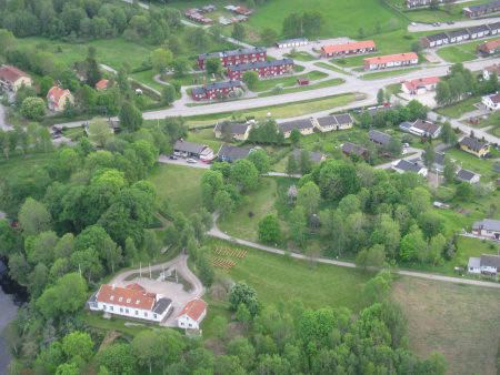 ... i vi såg i förgrunden Stigens herrgård där scenen och bänkarna fanns på plats inför nationaldagsfirandet 6 juni. Dalslands ballongklubb kommer att medverka med sin fana där som vi tilldelats från Färgelanda kommun.