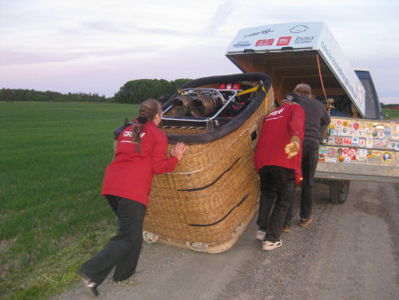 Ballongen packades och var snart tillbaka i släpkärran igen.