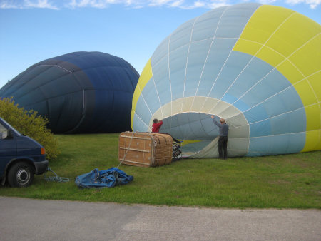 Förberedelserna gick lugnt till och de liggande ballongerna blev större och större.