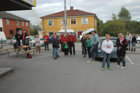 Många hade samlats intill kiosken vid torget i Högsäter inför kvällens flygning.