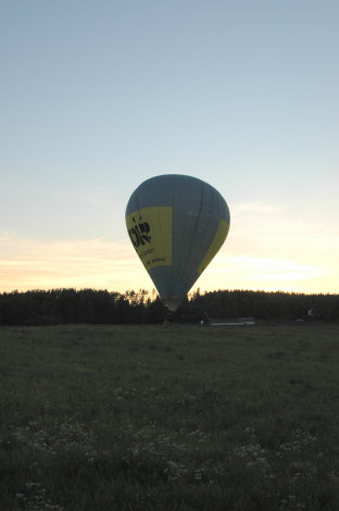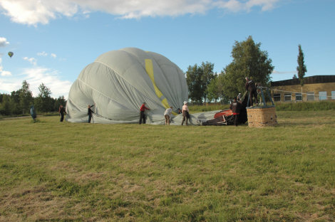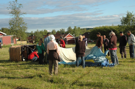 Så småningom kom ballongen ner och och gjorde en odramatisk landade - dock inte på de fina slagna gärdena utan på andra sidan vägen i trädan. Perfekt packning på vägen intill sedan.