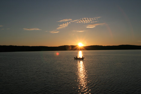 När ballongerna flög över en av alla sjöar intresserade sig fiskarna i båten mera för vad som hände uppe i luften än bland fiskarna under dem.