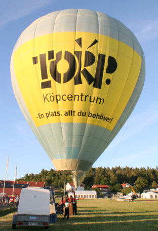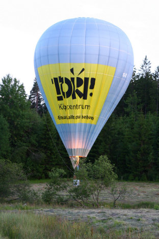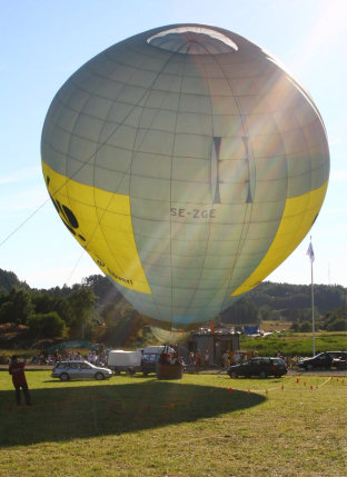 Det blåste en hel del men Kenneth lyckades hålla ballongen någotsånär upprätt i cirka en timme före den lades ner igen ...