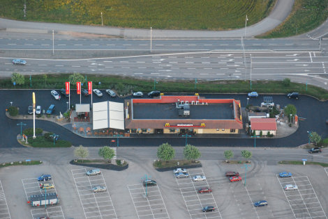 Ballongen flög över "sina hemtrakter" och vi kunde bland annat blicka ner mot McDonalds.