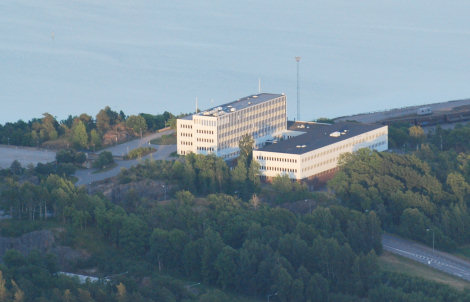 Uddevalla stadshus syntes vackert på höjden med utsikt ut över vattnet.