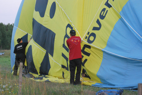 Ballongen packades ihop under tiden som Eva och Kenneth fick lite tid att prata om flygningen.