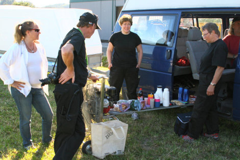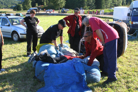 När första delen var avverkad av Diggilloo nyttjade vi pausen till att fylla ballongen igen. Nu förberedde vi oss på att starta och Trevor, Bengt och Eva verkade mycket glada för att komma med upp i luften.