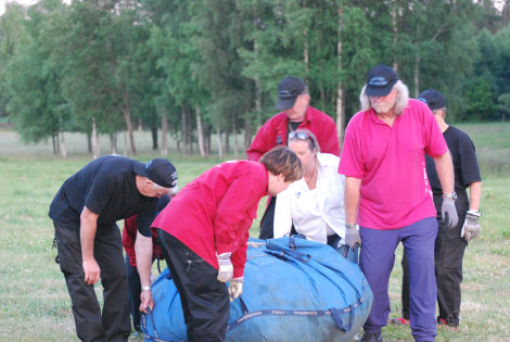 Inger och Bengt med flera hjälptes åt att få ur luften ur ballonghöljet ...