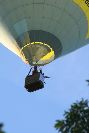 Eftersom publiken flitigt vinkade till ballongen vinkades givetvis tillbaka från korgen.