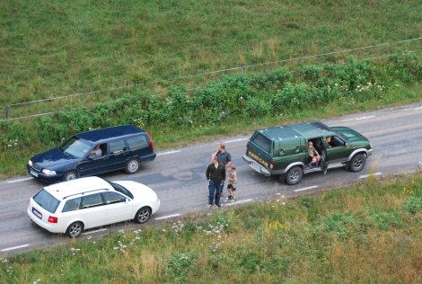 Upp i luften med nya passagerare och på vägen intill mellanlandningen sågs flera bilar ha stannat för att alla bättre skulle kunna följa ballongfärden.