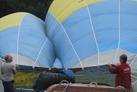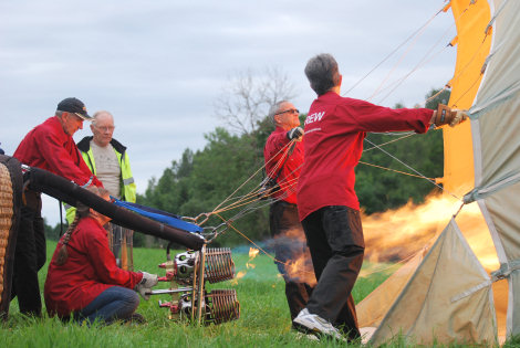 Så blev det dags för Eva att starta brännaren och varmluften gjorde att ballongen reste sig upp.