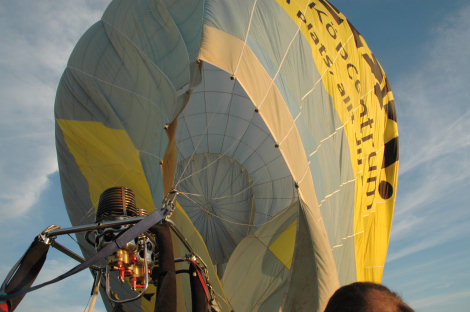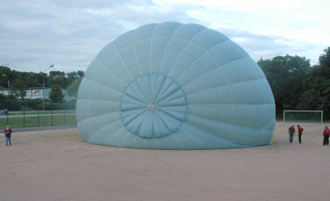 Medan kallfläkten jobbar blir ballonghöljet allt större och större. Cirka 3000 kubikmeter luft får plats i höljet. Mäktigt stort!