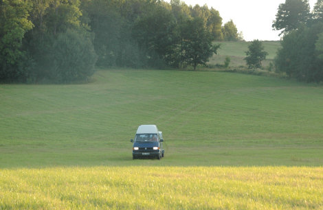 ... innebar att följebilen snart rullade ut på gärdet så vi slapp bära så långt.