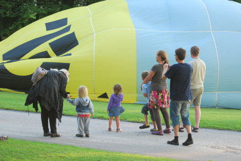Många intresserade samlades för att beundra den stora ballongen och vi blev stående på marken en stund för att invänta VIP-passagerarna.