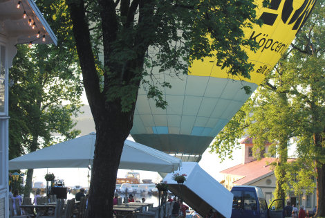 Ballongen steg till väders och seglade med lugna vindar in över centrala Uddevalla.