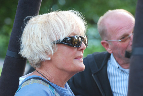 Passagerarna klev i korgen och Agneta såg glatt förväntansfull ut ...