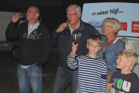 Dags för dop av förstagångsflygarna som döptes i champagne till Markgrevinna och Markgreve av Rosenhill. Två ungdomar fick åka med i korgen vid sista rangeringen över landningsgärdet och fick därför som tack för all hjälp även de champagne i håret. Men titel får de vänta med tills det blivit en riktig ballongfärd.