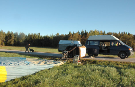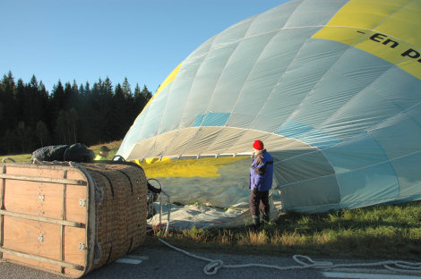 Korgen kunde ligga kvar på vägen medan ballonghöljet kallfylldes.