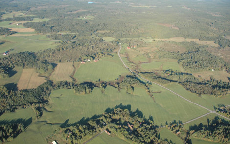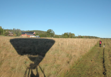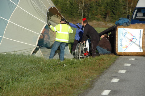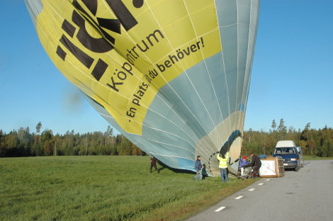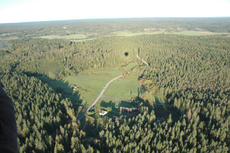 När vi sedan passerat över väg 172 norr om Högsäter och närmade oss Kroppefjäll blev det dags för landning. Bonden hade börjat slå gräset runt gärdet och hans första fråga blev; "Var ska jag slå nu så ni lättast kan lägga ner ballongen". Dessa underbara markägare!