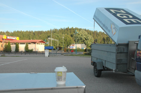 Vi hittade en del av parkeringen vid Torp köpcentrum utanför Uddevalla som vi ansåg skulle bli bra som startplats.