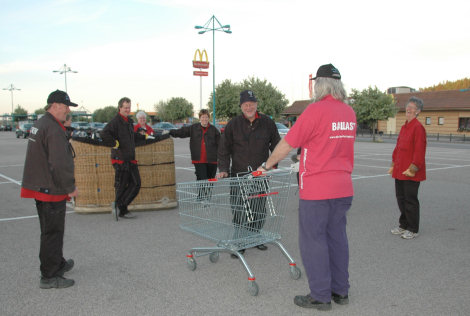 Så vi packade ihop för hemfärd. Trevor hittade en kundvagn intill oss och om han tyckte att han kunde hjälpa oss med att frakta undan ballongkorgen eller om han gjorde sig beredd för en shoppingtur på köpcentret framgick egentligen inte. |