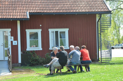 Deltagare från Grännatrakten passade på att vara sociala utanför sin stuga i det sköna vädret.