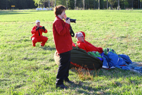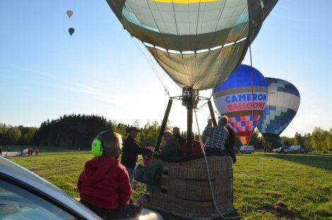Tio ballonger med besättningar begav sig till Brålanda för start där intill vandrarhemmet. Kenneth gjorde brännartest samtidigt som solens första strålar började komma.