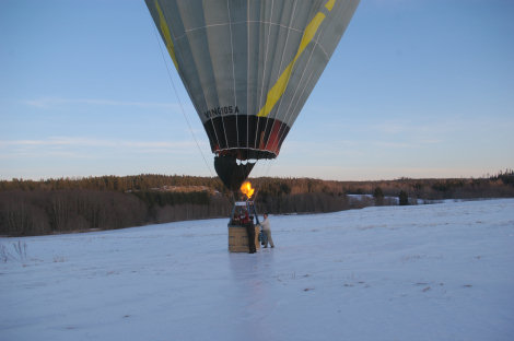 Vid Härsängen smög Eva ned ballongen på den isiga skaren. "Vi berömde den mjuka landningen flera gånger", berättade en av passagerarna lite senare. "Ja, vid varje studs", kom snabbt en annan kommentar.