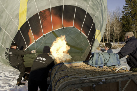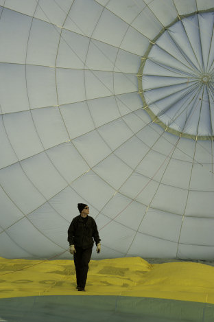 Sedan började vi så sakteliga och rigga ballongerna. Här är det Eva som håller på att provelda brännare ...
