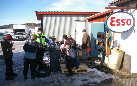 Verkligheten i Rännelanda var inte alls lika lugn. De där otrevliga "uppåtvindarna" (termik) som inte passar ihop med ballongflygning verkade vara i farten. Så vi passade i stället på och tog en fikapaus hos Curt i Vattneböle. Curt dukade så fint för oss utanför sin bilverkstad och passade upp på alla sätt och vis. TACK!