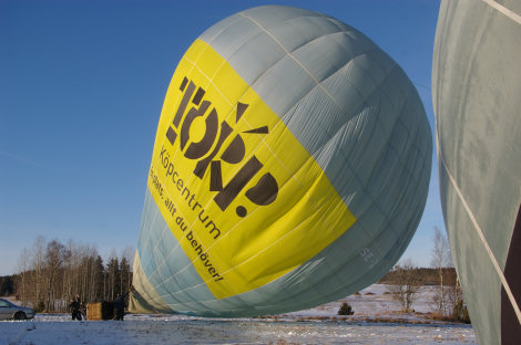 Vår blågula ballong (SE-ZGE) började först att fylla sig ...