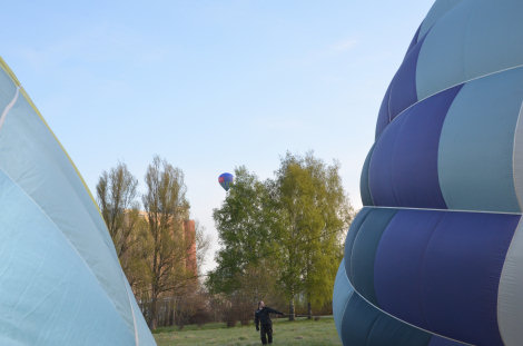 ... där maken Anders fanns på plats och hjälpte till att rangera ballongen något närmare vägen.