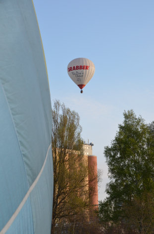 Stefan Lundin från Medvindens ballongklubb i Småland var först upp i luften och försvann norrut förbi silon i Brålanda.