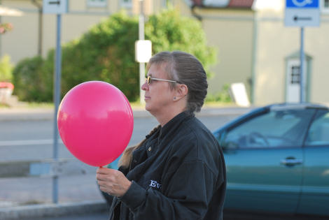 Sydvästliga vindar skulle kunna ta dagens två ballonger från Saxtorp i Rännelanda mot Ånnerudshållet. Cathy verkade dock fortfarande vara mest intresserad av fotografen!
