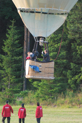 Starten filmades från marken och sedan gjordes en mellanlandning för att låta fotografen komma ombord och filma i ballongkorgen.