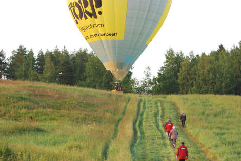 Det blev till och med landning på gärdet intill de väntande medlemmarna. Glada markägare stod och välkomnade och ballongen flyttades ut till vägen där den snabbt packades ihop.