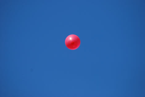 En heliumfylld ballong släpptes upp i den klarblå himlen för att visa vindarnas riktning och fart.