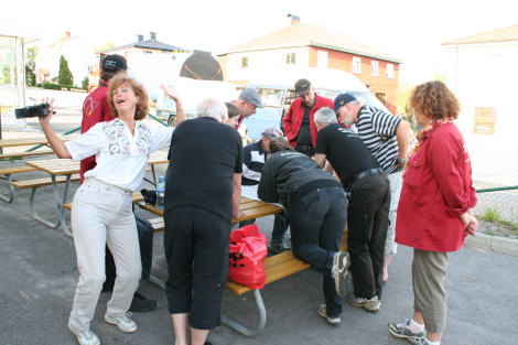 Väl ute på startplatsen började medlemmarna att jobba för att få ballongen flygfärdig.