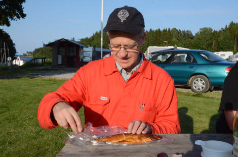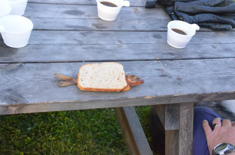 Så tog vi lugnt fram kaffekorgen och börja fika igen. Det fanns mera rökt sik kvar som ...