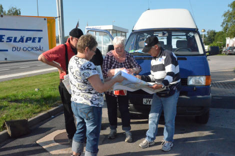 Björns nyinköpta karta hjälptes flera åt till att vika ihop till ett mindre och mera hanterbart format.