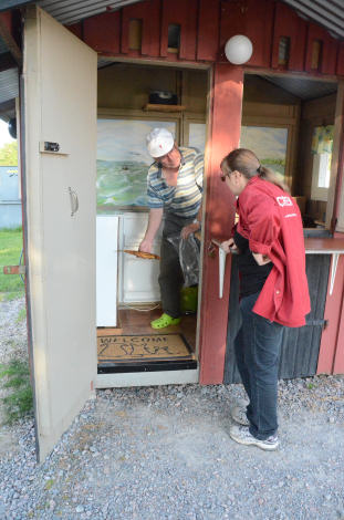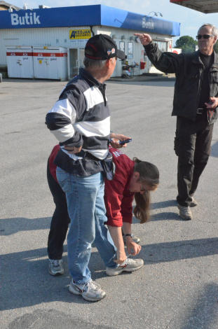 Eva såg till att Björns skosnören var ordentligt knutna medan Kenneth gav några välmenta råd.