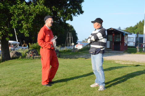 Piloterna konfererade och bestämde att vi i kväll fick fortsätta hålla oss på marken. Per och Björn planerade in att försöka göra en gemensam flygning senare under veckan - kanske det kan bli på fredagskvällen i Gränna.