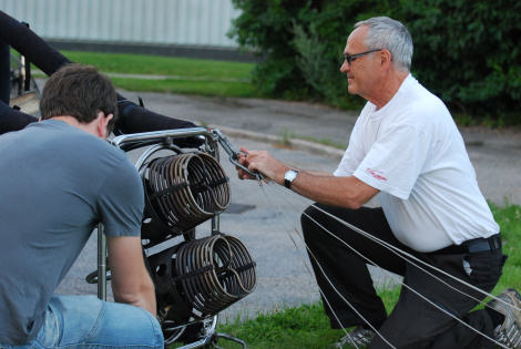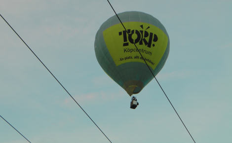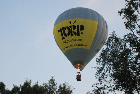Fjordfestivalen i Uddevalla gav oss ett ypperligt tillfälle att visa upp vår fina ballong med reklam för Torp köpcentrum. Men först var det till att vänta ut några stora mörka regnmoln i närheten. Och så givetvis välja ut en lämplig startplats - återigen var Peter framme och spanade fram lämpliga ställen. Jonas och Kenneth riggade ballongen ...